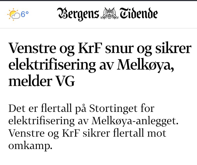 Det er flertall på Stortinget for elektrifisering av Melkøya-anlegget. Venstre og KrF sikrer flertall mot omkamp. Venstre og KrF blitt med